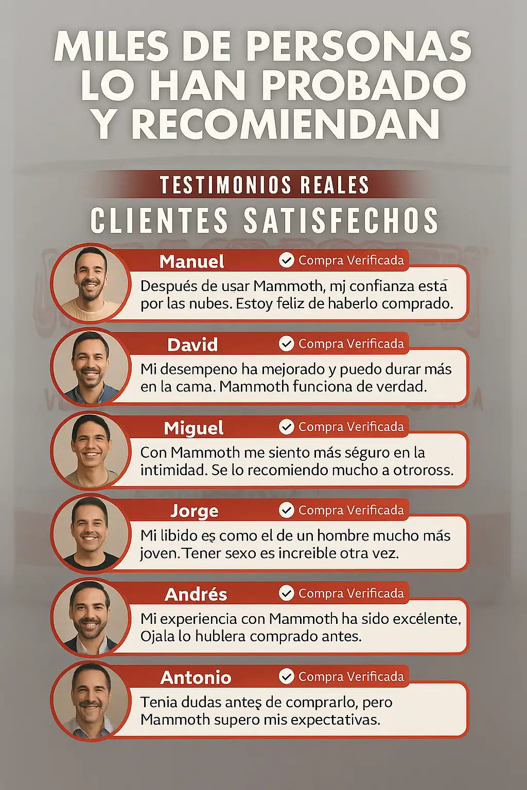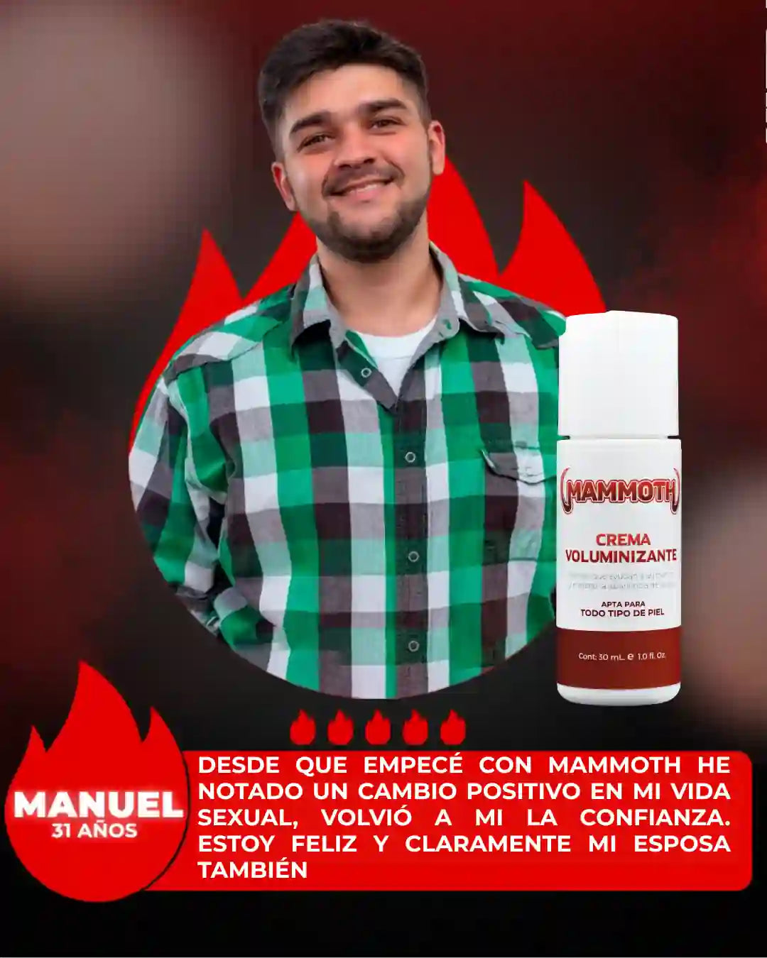 ✅ Sí, Mammoth está diseñado para complementar tu confianza y potenciar tu presencia en momentos íntimos. Miles de hombres ya notan la diferencia en su seguridad.