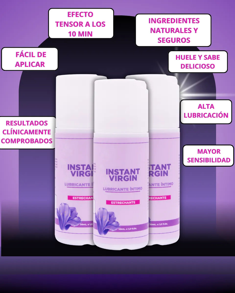 Instant Virgin es un gel íntimo diseñado para aplicar 10 minutos antes de un encuentro íntimo. Su fórmula genera una sensación de firmeza, devolviendo seguridad y disfrute en tus relaciones.