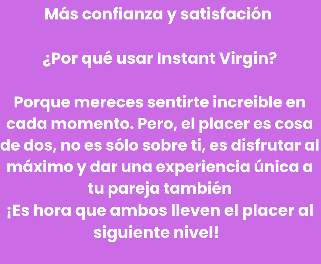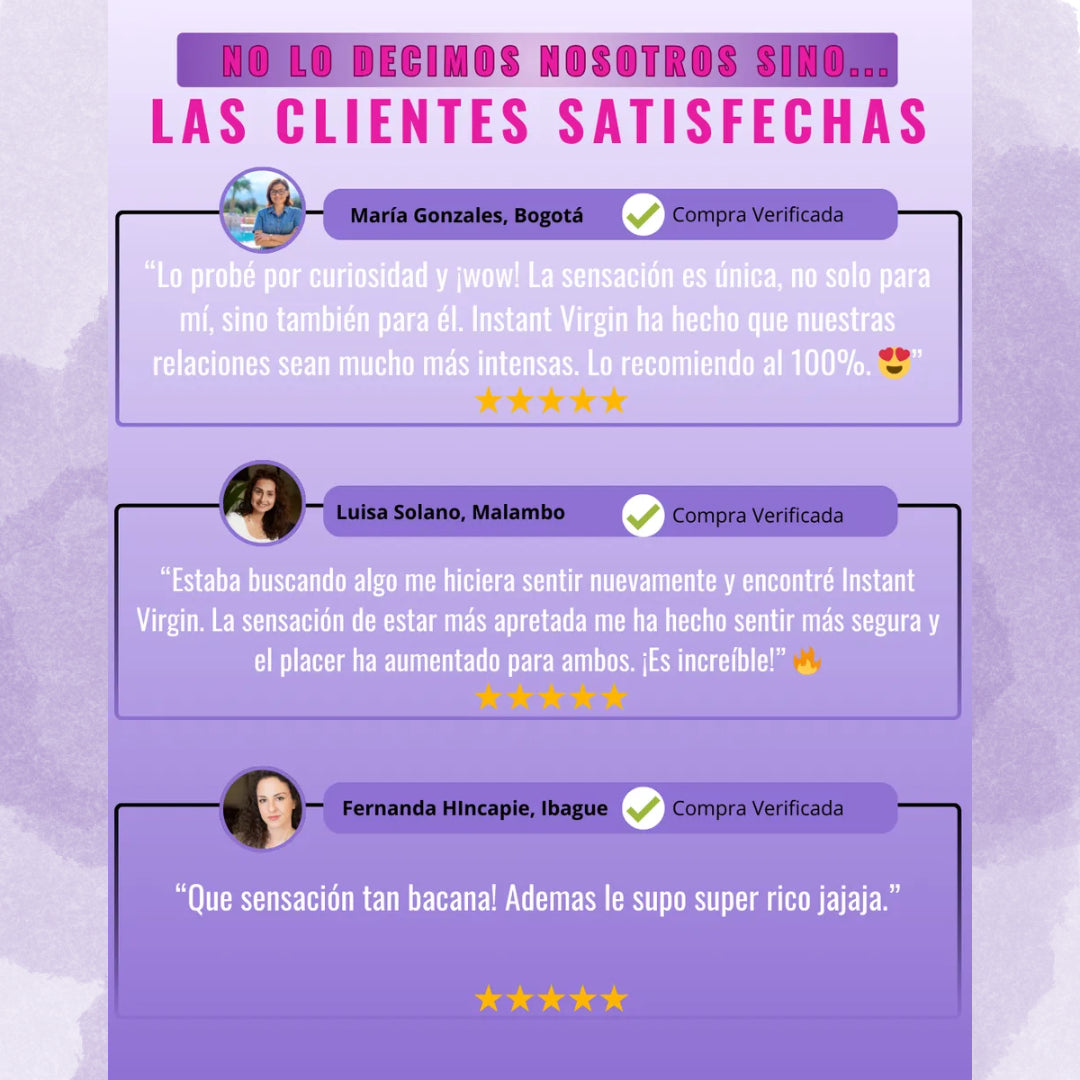 La pérdida de firmeza y placer íntimo afecta a más del 60% de las mujeres en algún momento de sus vidas, generando inseguridad y desconexión en sus relaciones. Instant Virgin restaura la confianza y el disfrute en minutos, ayudándote a sentirte segura y renovada.