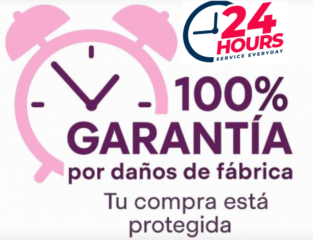 Te ofrecemos una garantía de satisfacción de 24 horas si el producto llega dañado o con algún defecto de fábrica.